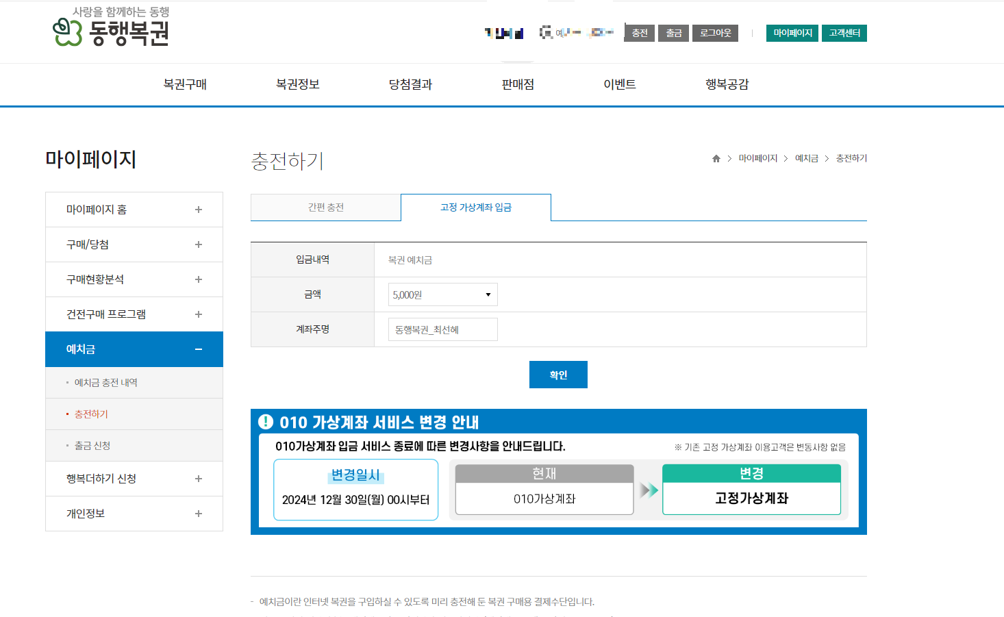 - 간편 등록이나 가상계좌로 입금 둘 중 선택 충전