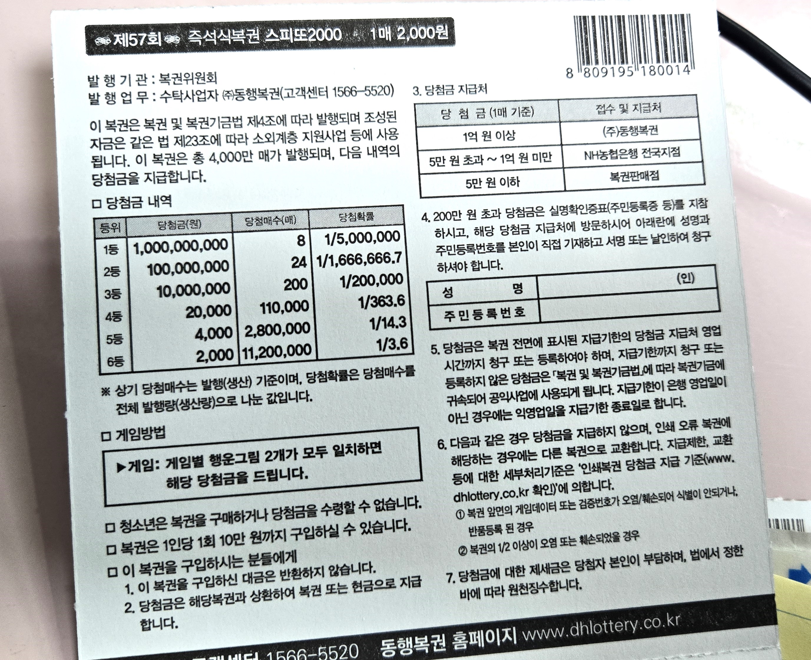 사서 바로 긁어 확인하는 재미가 있는 즉석복권인 스피또1000, 스피또2000은 동행 복권에서 발행하며 복권 판매점에서 구매할수있습니다. 당첨 잘 되는 명당도 있다고 하니 당첨점 확인후 구매하셔도 좋습니다.