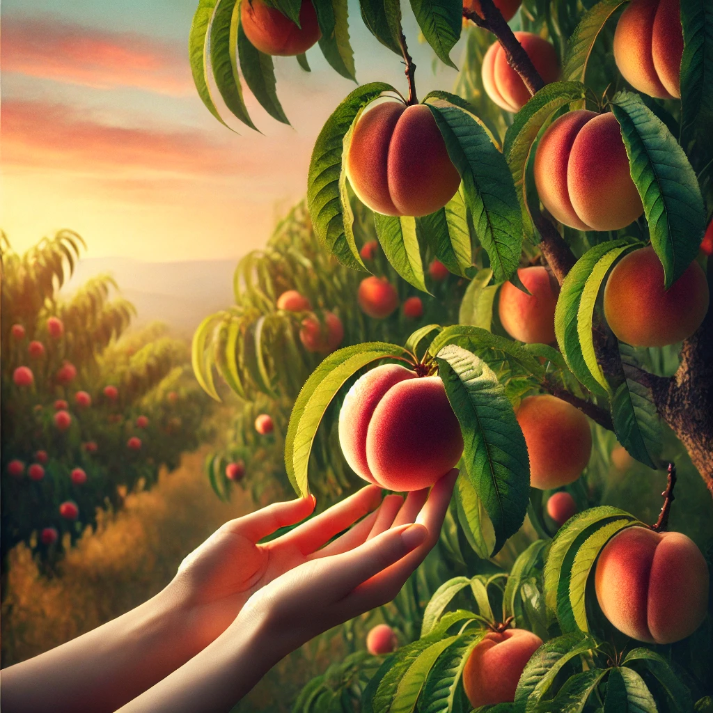 성장과 결실, 번영을 상징하며, 특히 복숭아가 많고 나무가 건강하다면 큰 성공과 좋은 소식을 의미합니다.